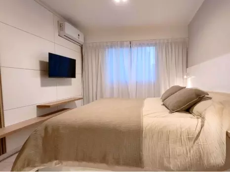 El departamento cuenta con todo lo necesario para una estadía cómoda: aire acondicionado, conexión WiFi de alta velocidad, piscina en la terraza del edificio, Smart TV, cocina equipada, ropa de cama y baño completo. Es un espacio moderno, luminoso y funcional, pensado para disfrutar de una experiencia práctica y confortable.