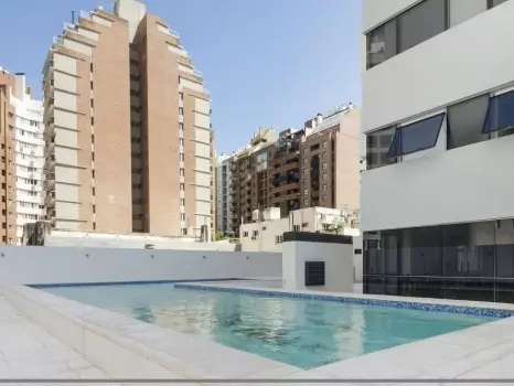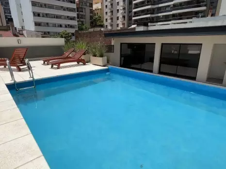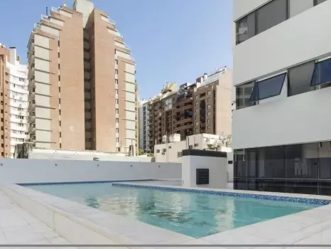El edificio ofrece piscina de uso común, brindando un plus de confort y relax durante su alojamiento y un gimnasio. En la planta baja cuenta con cochera disponible (con costo adicional), ideal para quienes viajan en auto.