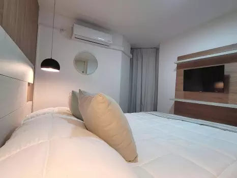 El departamento cuenta con todo lo necesario para una estadía cómoda: aire acondicionado, conexión WiFi de alta velocidad, Led TV, cocina equipada, ropa de cama, baño completo, balcón y piscina.