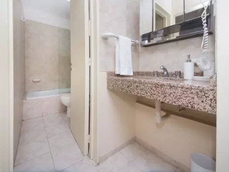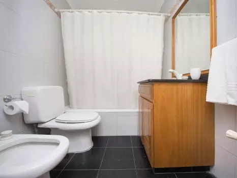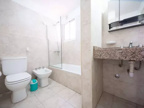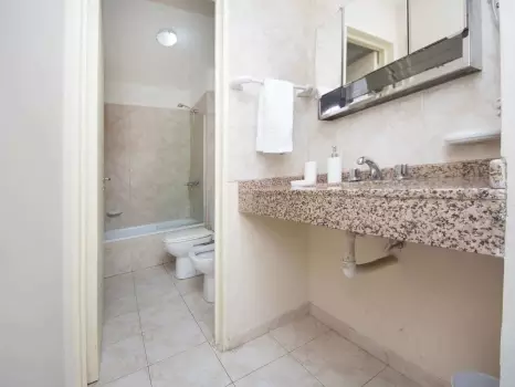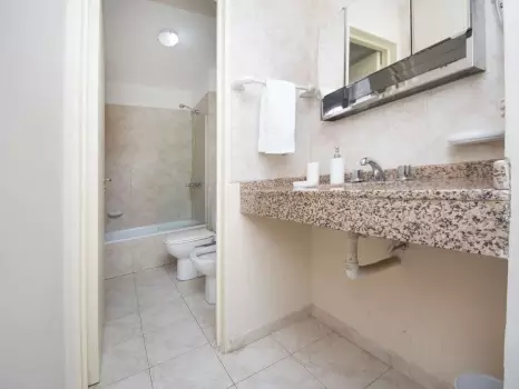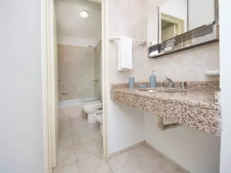 El departamento se encuentra totalmente equipado y amoblado, y cuenta con dormitorio en suite con baño privado, más un baño social en la entrada, una característica muy valorada en departamentos en alquiler temporario para hasta 6 personas, tanto para familias, parejas, estudiantes o viajeros corporativos.