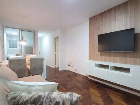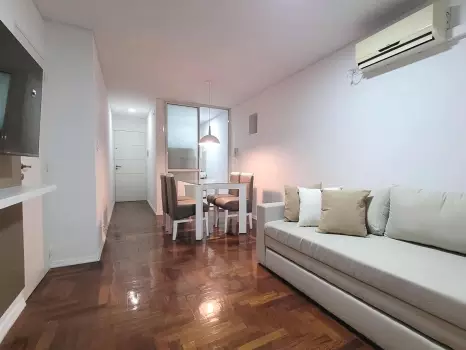 El departamento cuenta con todo lo necesario para una estadía cómoda: aire acondicionado, conexión WiFi de alta velocidad, Led TV, cocina equipada, ropa de cama, baño completo y balcón.