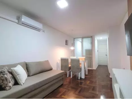 El departamento cuenta con todo lo necesario para una estadía cómoda: aire acondicionado, conexión WiFi de alta velocidad, Led TV, cocina equipada, ropa de cama, baño completo, toilette y balcón.