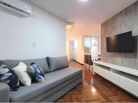 El departamento cuenta con todo lo necesario para una estadía cómoda: aire acondicionado, conexión WiFi de alta velocidad, Led TV, cocina equipada, ropa de cama, baño completo y balcón.