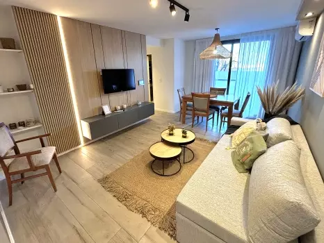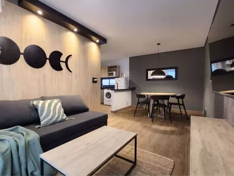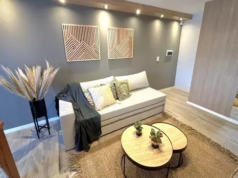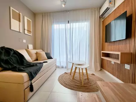 El departamento cuenta con todo lo necesario para una estadía cómoda: aire acondicionado, conexión WiFi de alta velocidad, terraza propia, Smart TV, cocina equipada, ropa de cama y baño completo. Es un espacio moderno, luminoso y funcional, pensado para disfrutar de una experiencia práctica y confortable.