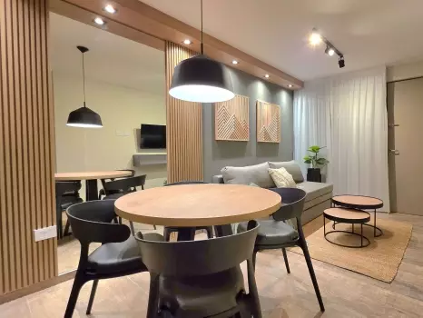 El departamento cuenta con todo lo necesario para una estadía cómoda: aire acondicionado, conexión WiFi de alta velocidad, Smart TV, cocina equipada, ropa de cama, piscina en la terraza y baño completo. Es un espacio moderno y funcional, pensado para disfrutar de una experiencia práctica y confortable.