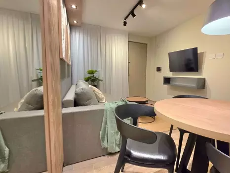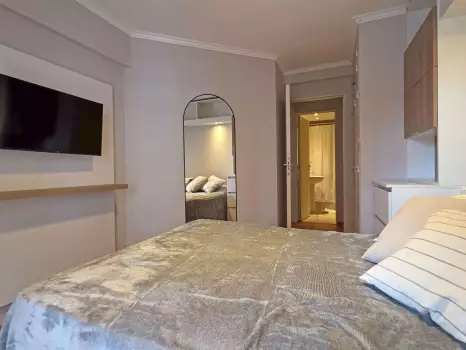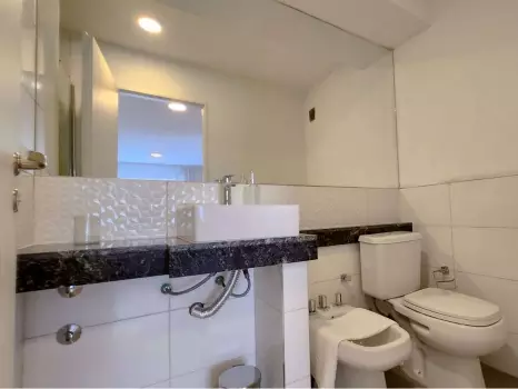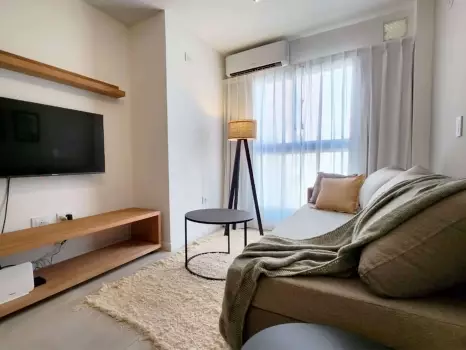 El departamento cuenta con todo lo necesario para una estadía cómoda: aire acondicionado, conexión WiFi de alta velocidad, balcón, piscina en la terraza del edificio, Smart TV, cocina equipada, ropa de cama y baño completo. Es un espacio moderno, luminoso y funcional, pensado para disfrutar de una experiencia práctica y confortable.