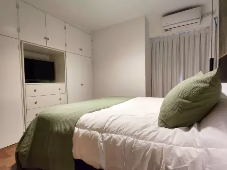 Situado a pocas cuadras de la Avenida Pueyrredón, en una de las zonas más buscadas de la ciudad, está rodeado de bares, cafeterías, restaurantes y tiendas, con supermercados y bancos cercanos. Además, ofrece la opción de cochera dentro del mismo edificio, lo que lo convierte en una elección perfecta para quienes viajan en auto y desean seguridad y comodidad durante su estadía.