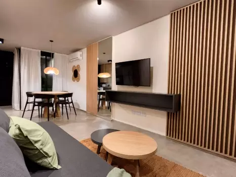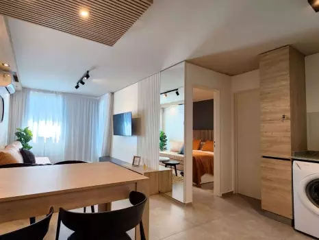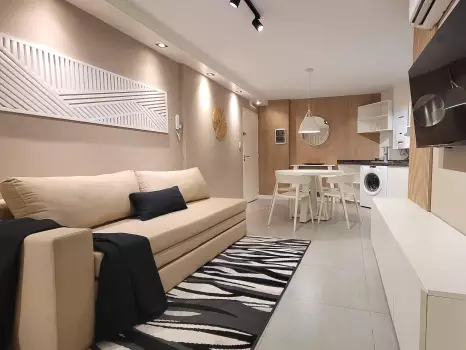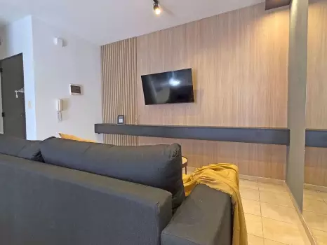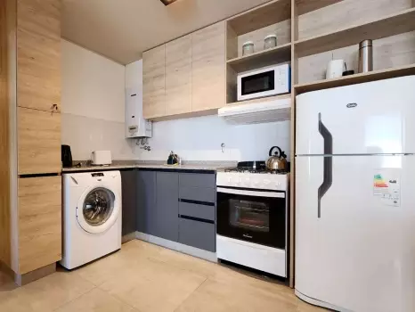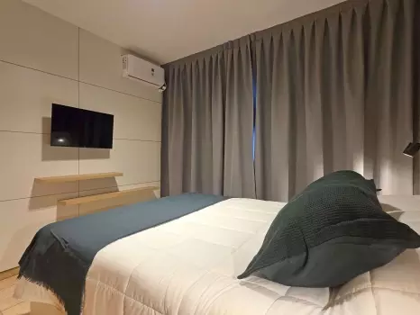 El departamento cuenta con todo lo necesario para una estadía cómoda: aire acondicionado, conexión WiFi de alta velocidad, balcón, Smart TV, cocina equipada, ropa de cama, baño completo y piscina en la terrraza del edificio. Es un espacio moderno y funcional, pensado para disfrutar de una experiencia práctica y confortable.