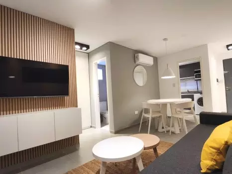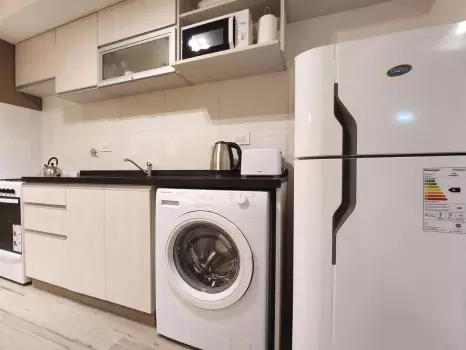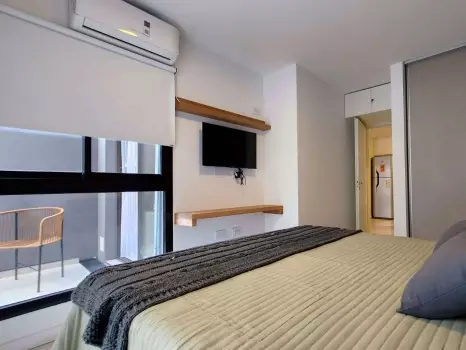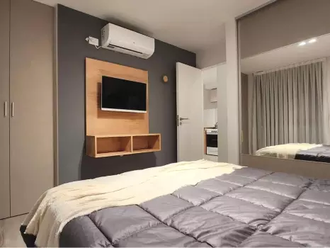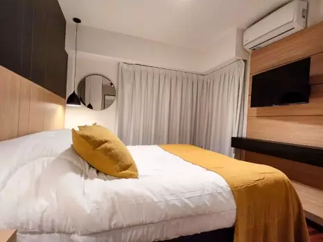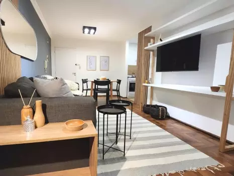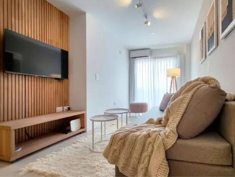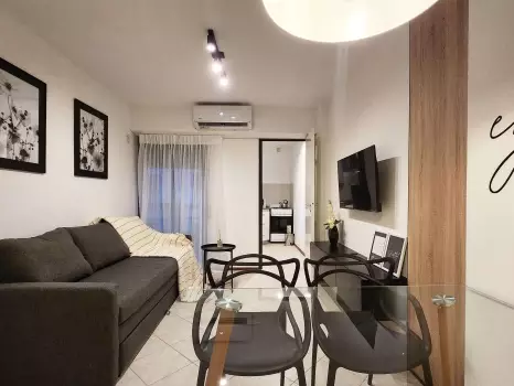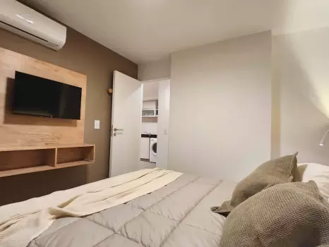 El departamento cuenta con todo lo necesario para una estadía cómoda: aire acondicionado, conexión WiFi de alta velocidad, Smart TV, cocina equipada, ropa de cama, baño completo y balcón. Un ambiente ideal tanto para viajeros, turistas o profesionales que buscan una estadía cómoda y funcional.