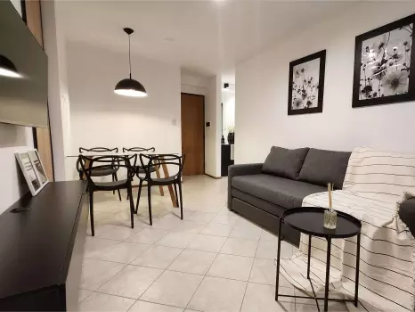 El departamento está completamente equipado, con mobiliario moderno y detalles de diseño que transmiten la calidez y confort de un verdadero hogar.