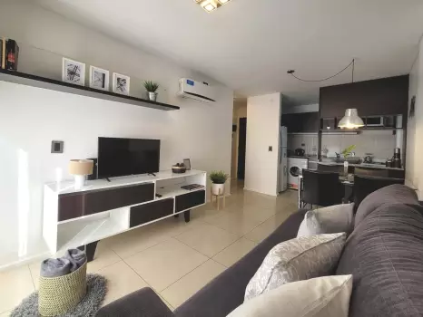 El departamento cuenta con todo lo necesario para una estadía cómoda: aire acondicionado, conexión WiFi de alta velocidad, Smart TV, cocina equipada, ropa de cama, baño completo y asador propio. Un ambiente ideal tanto para viajeros, turistas o profesionales que buscan una estadía cómoda y funcional.
