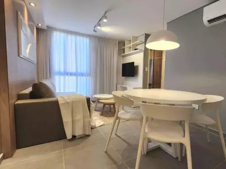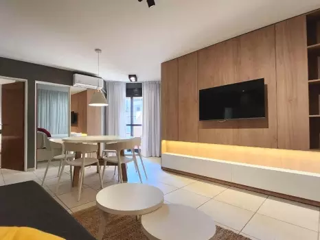El departamento cuenta con todo lo necesario para una estadía cómoda: aire acondicionado, conexión WiFi de alta velocidad, Smart TV, cocina equipada, ropa de cama, 2 baños completos (uno en suite), balcón y piscina en la terraza del edificio.