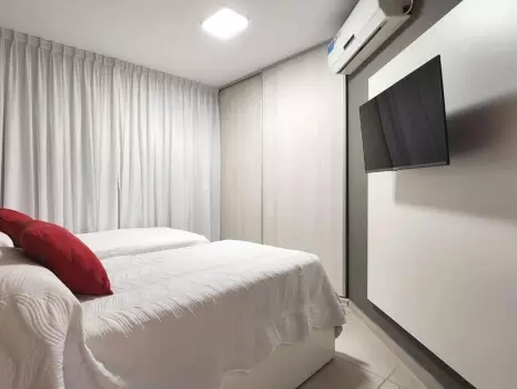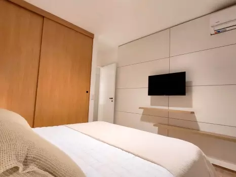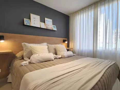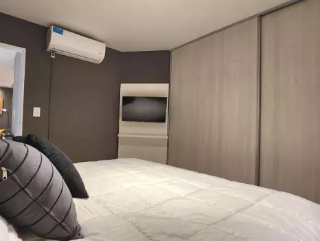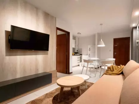 El departamento cuenta con todo lo necesario para una estadía cómoda: aire acondicionado, conexión WiFi de alta velocidad, balcón, Smart TV, cocina equipada, ropa de cama, baño completo, balcón y piscina en la terraza del edificio, un espacio moderno y funcional, pensado para disfrutar de una experiencia práctica y confortable.