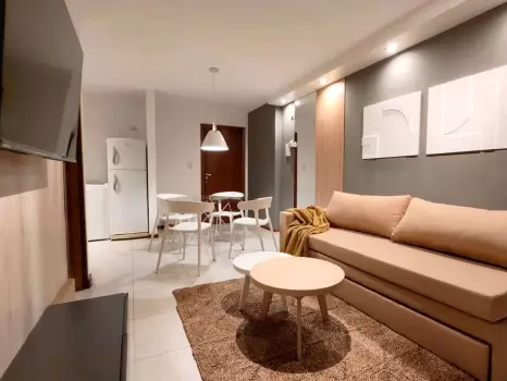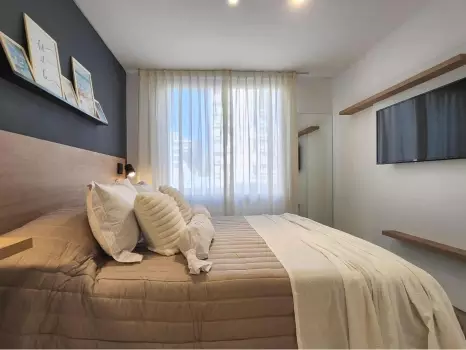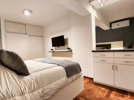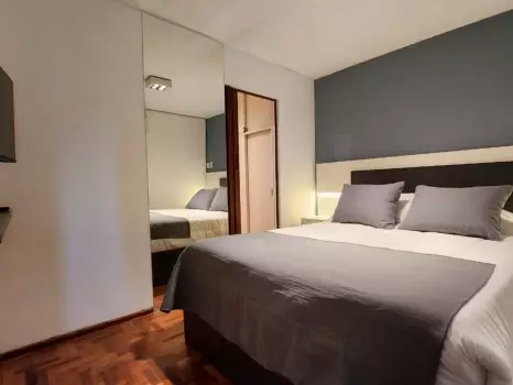 El departamento cuenta con cochera privada incluida, ubicada a solo 1 cuadra, lo que brinda una experiencia práctica y segura para quienes llegan en vehículo. Su amplitud, diseño funcional garantizan una estancia confortable, con todo lo necesario para descansar o trabajar.