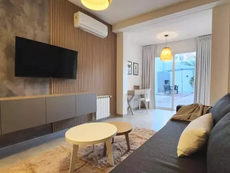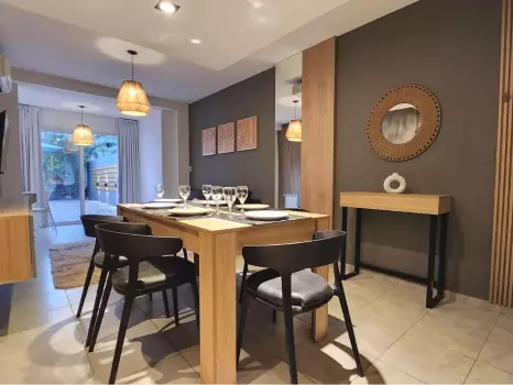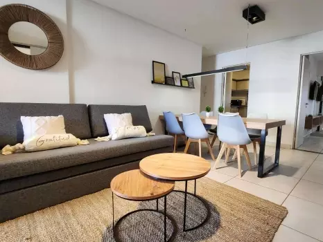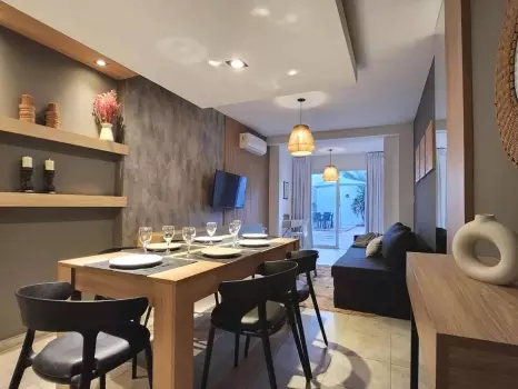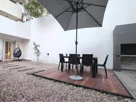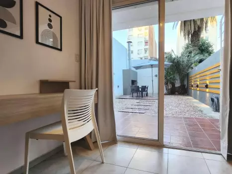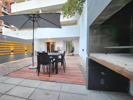 El departamento cuenta además con un amplio patio privado, perfecto para disfrutar de asados al aire libre, momentos de descanso y reuniones en un espacio cómodo y totalmente equipado. Su localización estratégica permite acceder rápidamente a los principales puntos de interés de la ciudad, combinando cercanía con una atmósfera residencial única.